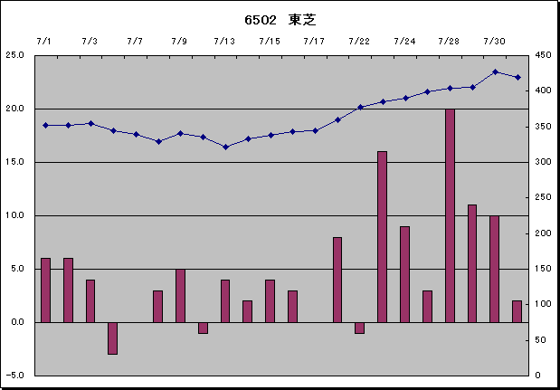 6502 東芝でそれが顕著だと思う。9984 ソフトバンクの場合は、月末の2日だけ逆に「買い」