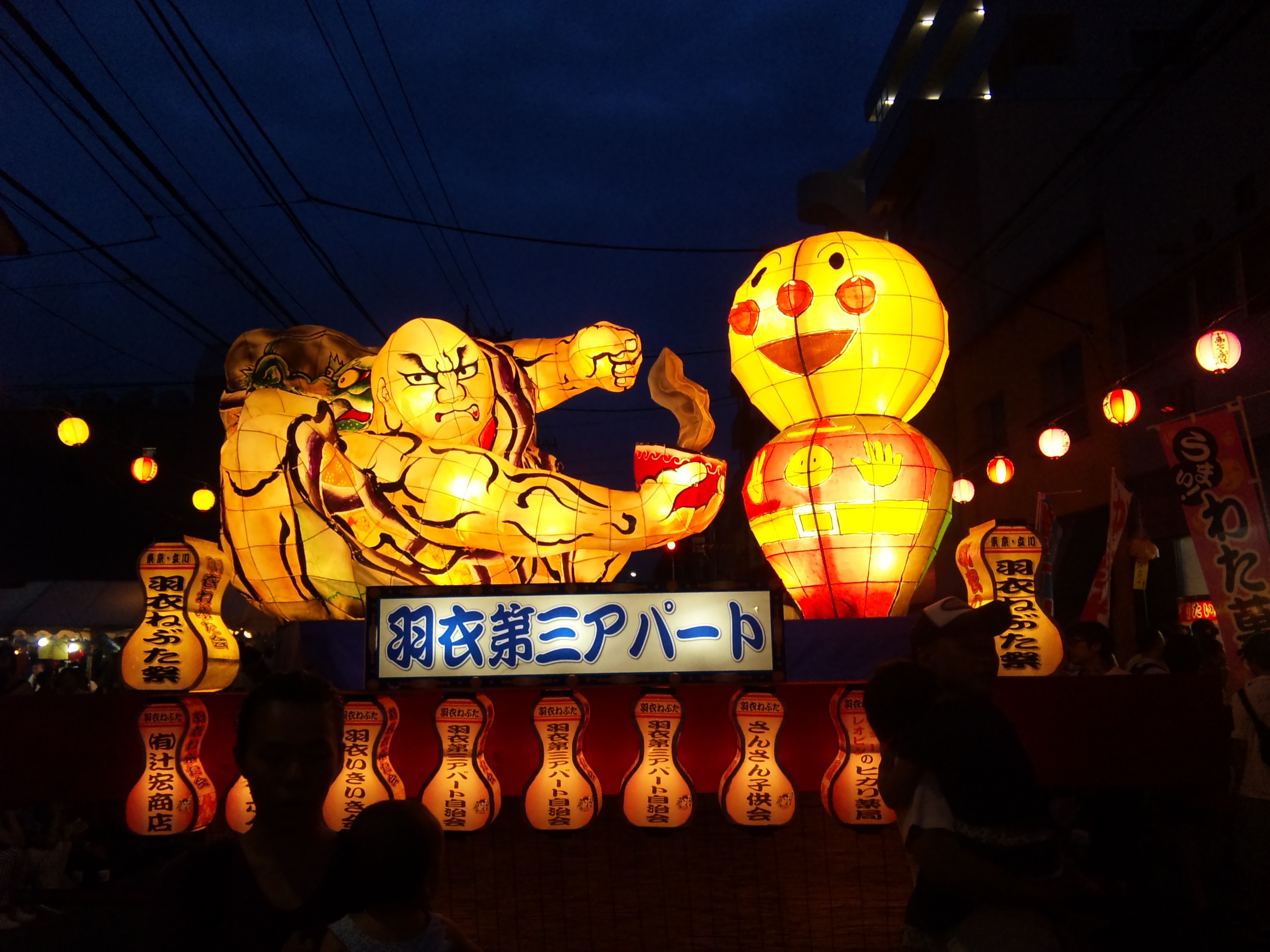 先日町内のねぶた祭へ行ったとき撮ったものだ。アンパンマンと金剛力士像(?)の組み合わせもすごいが、「羽衣第三アパート」ってなんなんだと思った。ローカル色満載のお祭りだった。
